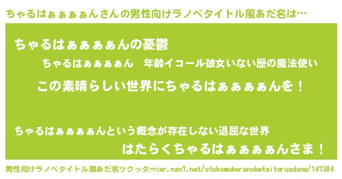 | 女子向けラノベタイトル風あだ名 | 『悪役ちゃるはぁぁぁぁんに転生したようですが、知った事ではありません』 |