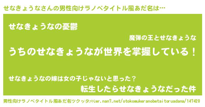 | ヒーロー風カッコイイあだ名 | 『スーパーセナキョウナ』『仮面セナダー』 |