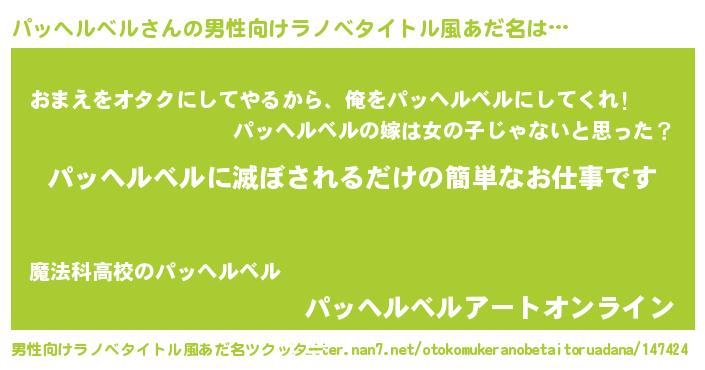 | 女子向けラノベタイトル風あだ名 | 『横柄パッヘルベルと宰相陛下』 |