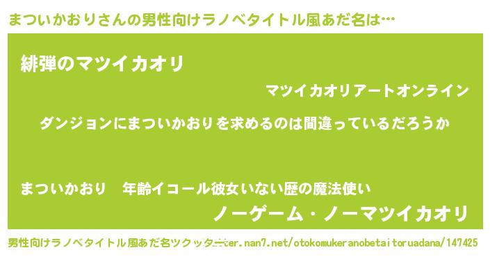| ヒーロー風カッコイイあだ名 | 『黄金騎士マツ』『スーパーマツイカオリ』 |