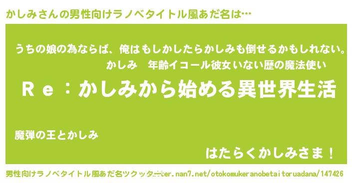 | 女子向けラノベタイトル風あだ名 | 『かしみストレイドッグス』 |