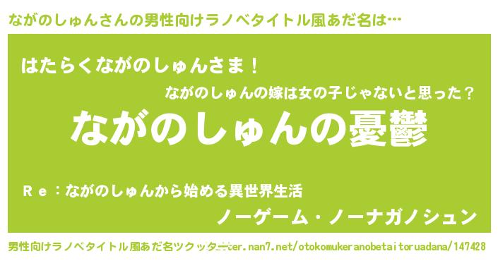 | 女子向けラノベタイトル風あだ名 | 『(仮)ながのしゅんのやんごとなき事情』 |