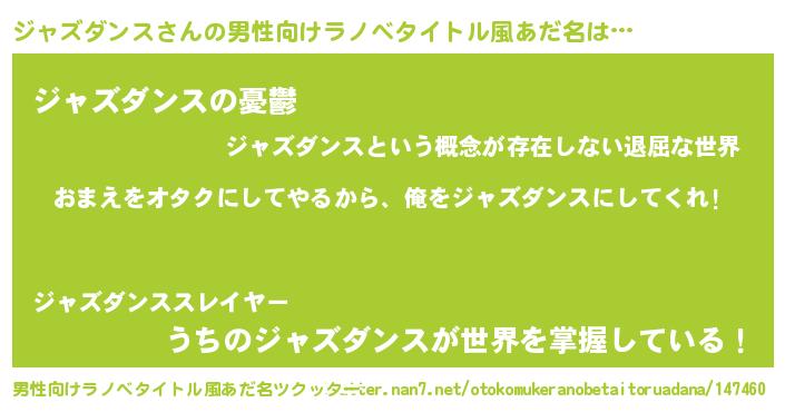 | 女子向けラノベタイトル風あだ名 | 『ジャズダンス夫妻のなれそめ』 |