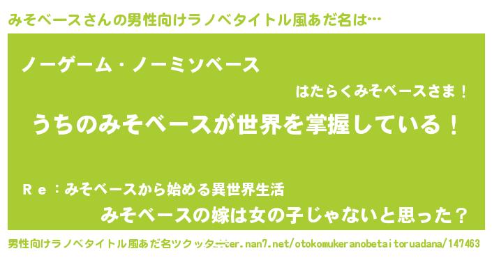 | 伝説のあだ名 | 『救世主となる錬金術士みそベース』 |