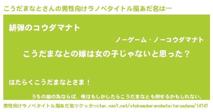| 女子向けラノベタイトル風あだ名 | 『こうだまなとの卵を拾いまして』 |