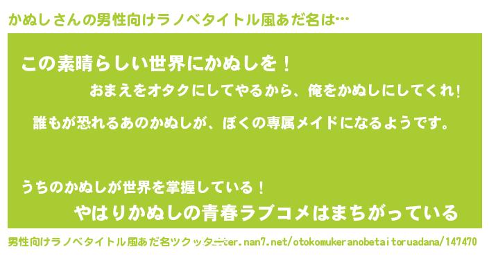 | 意味不明あだ名 | 『永久保存かぬし』『かぬしフォーエバー』 |