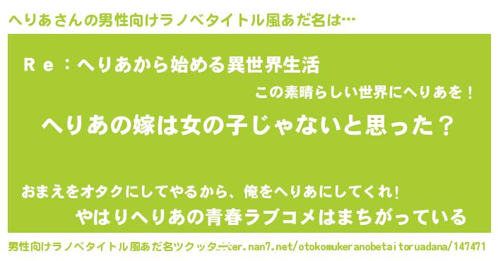 | 胡散臭い通販商品みたいなあだ名 | 『伝統あるペンダント…その名も「へりあ」』 |