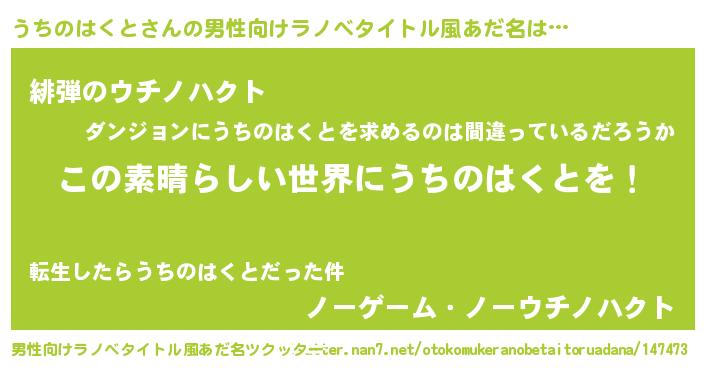 | 意味不明あだ名 | 『住所不定無職うちのはくと(50歳)』 |