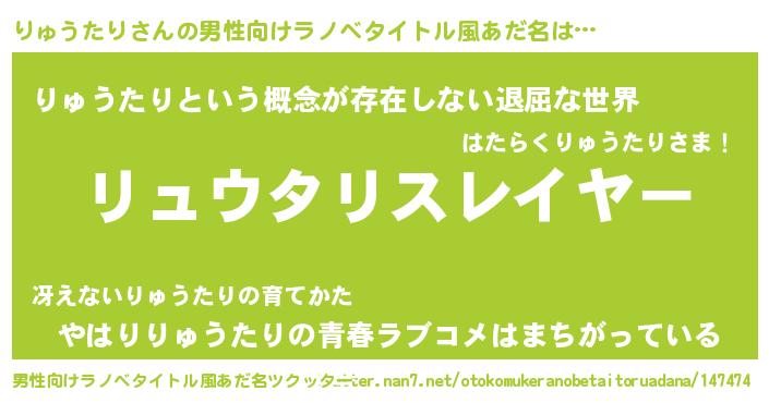 | ヒーロー風カッコイイあだ名 | 『ネオリュウタリ』『仮面リュダー』 |