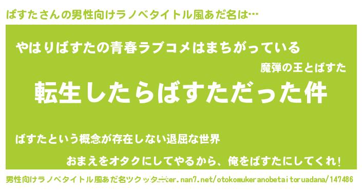 | ヘコむあだ名 | 『豆乳』『ばすた(小並感)』『ばすを』 |
