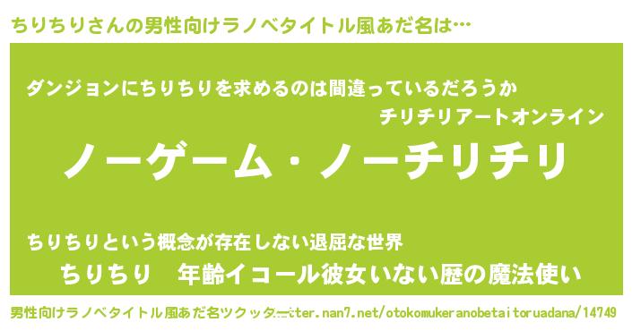 | ヒーロー風カッコイイあだ名 | 『慈愛の使者ちりちり』『暗黒騎士チリ』 |