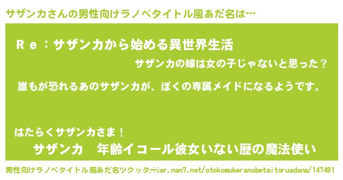 | 女子向けラノベタイトル風あだ名 | 『異世界でカフェサザンカを開店しました。』 |