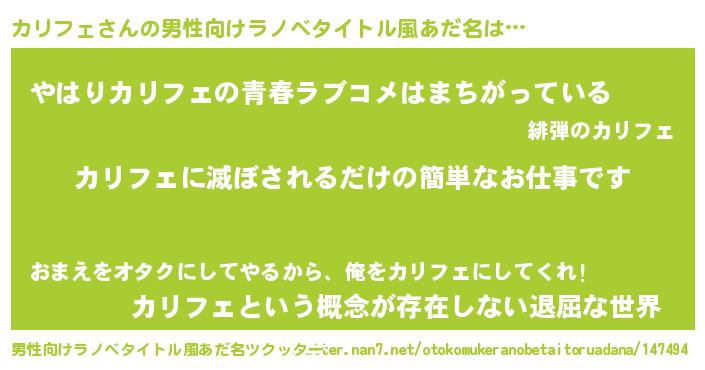 | 胡散臭い通販商品みたいなあだ名 | 『運命の人と巡り会える高級そうな皿…その名も「カリフェ」』 |