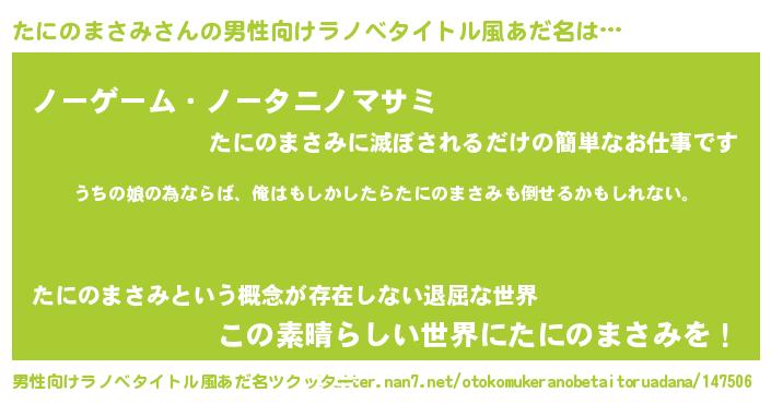 たにのまさみさんの男性向けラノベタイトル風あだ名をツクッター!