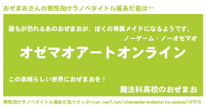| 胡散臭い通販商品みたいなあだ名 | 『億万長者になれる霊験あらたかなお札…その名も「おぜまお」』 |