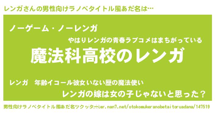 | ヘコむあだ名 | 『レンっ子』『レバニラ』『レンにー』 |