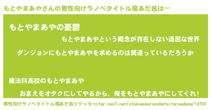 | 女子向けラノベタイトル風あだ名 | 『もとやまあやは平凡を望む』 |