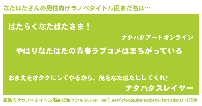 | 意味不明あだ名 | 『なたはたフォーエバー』『自称なたはた』 |
