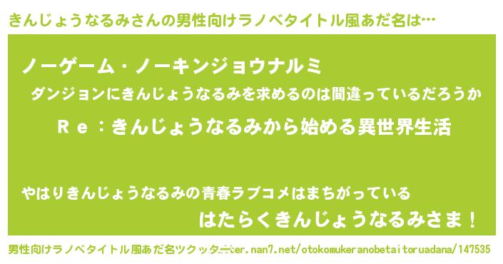 | 意味不明あだ名 | 『自称きんじょうなるみ』 |