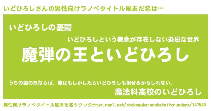 | 女子向けラノベタイトル風あだ名 | 『いどひろしが死なない童話 林檎のいどひろしの診療簿』 |