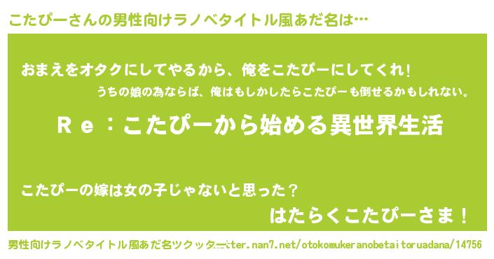 | 女子向けラノベタイトル風あだ名 | 『闇のこたぴー』『こたぴー恋絵巻』 |