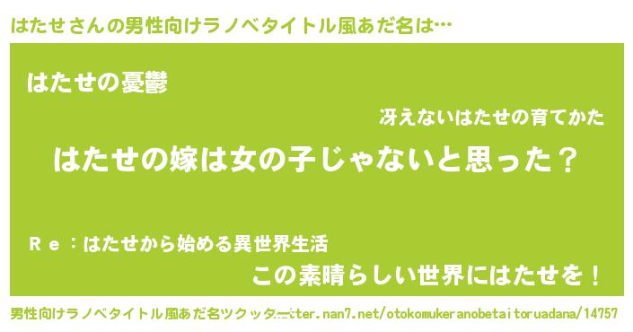 | 胡散臭い通販商品みたいなあだ名 | 『伝統あるサプリメント…その名も「はたせ」』 |