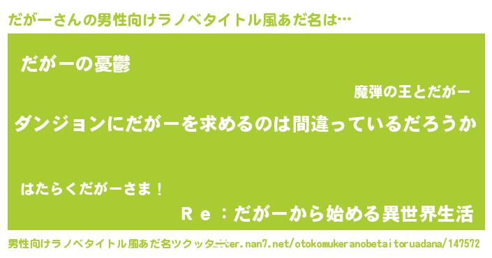 | 女子向けラノベタイトル風あだ名 | 『だがーは平凡を望む』 |