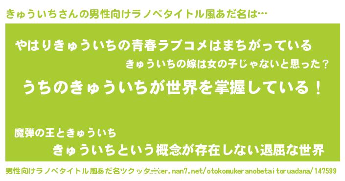 | 胡散臭い通販商品みたいなあだ名 | 『運命の人と巡り会える高級そうな絵画…その名も「きゅういち」』 |