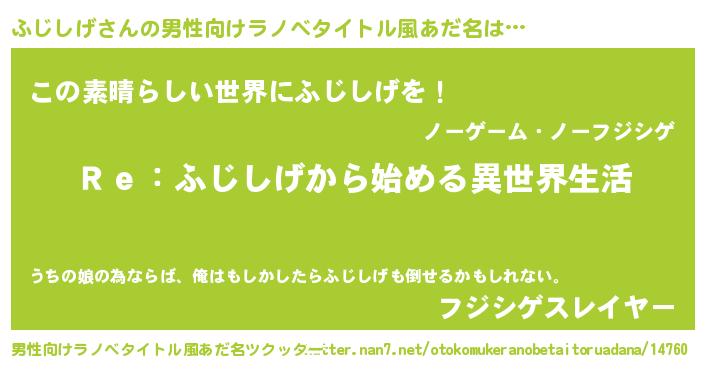 | 女子向けラノベタイトル風あだ名 | 『闇のふじしげ』『死神ふじしげの再婚』 |