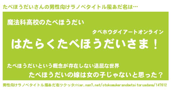 | ヒーロー風カッコイイあだ名 | 『超時空戦士タベホウダイ』 |