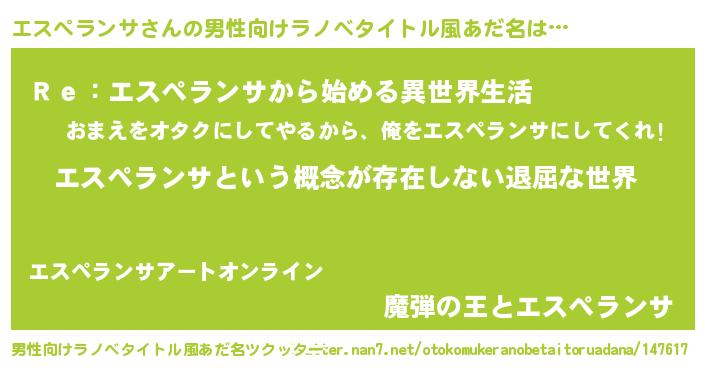 | 意味不明あだ名 | 『永久保存エスペランサ』 |
