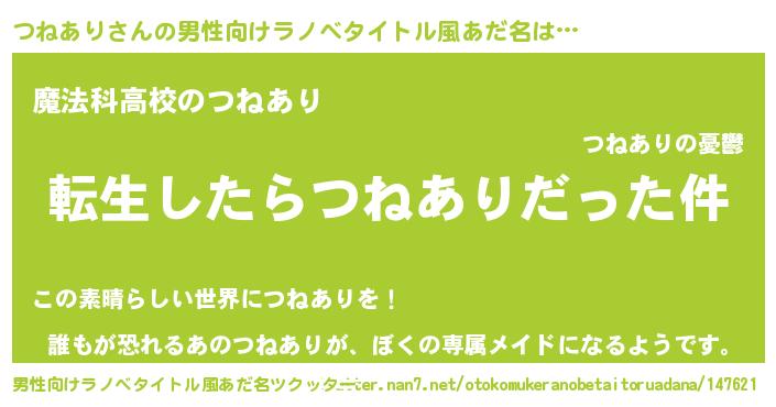 つねありさんの男性向けラノベタイトル風あだ名をツクッター!