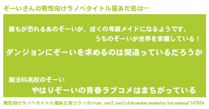 | 女子向けラノベタイトル風あだ名 | 『ぞーいは平凡を望む』 |