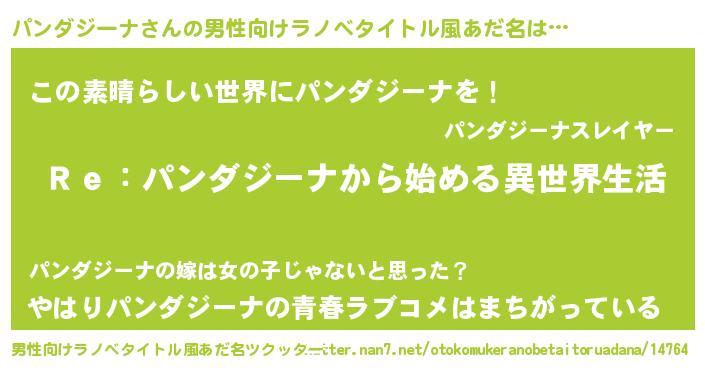 | 意味不明あだ名 | 『自称パンダジーナ』 |