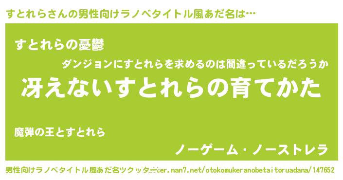 | 胡散臭い通販商品みたいなあだ名 | 『モテモテ間違いなし霊験あらたかなお札…その名も「すとれら」』 |