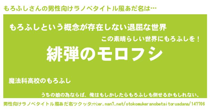| 意味不明あだ名 | 『永久保存もろふし』『自称もろふし』 |