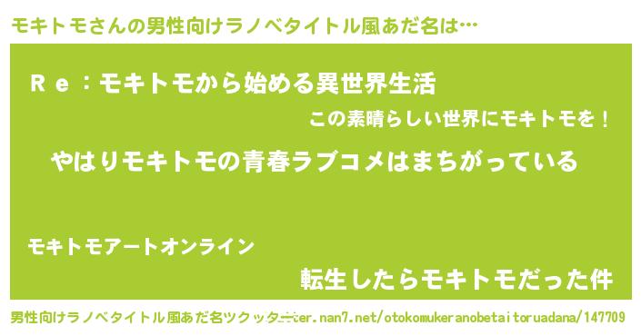 | ファンタジー風あだ名 | 『エターナルモキトモー』『ゼモキトゥ』 |