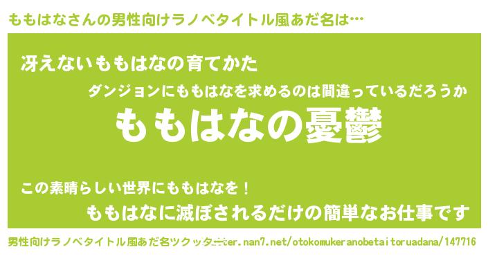 | 胡散臭い通販商品みたいなあだ名 | 『モテモテ間違いなし霊験あらたかなお札…その名も「ももはな」』 |