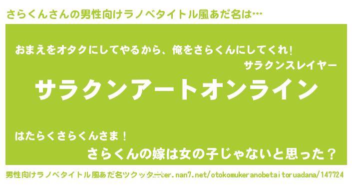 | 女子向けラノベタイトル風あだ名 | 『誰かこのさらくんを説明してください! ~契約から始まるウェディング~』 |