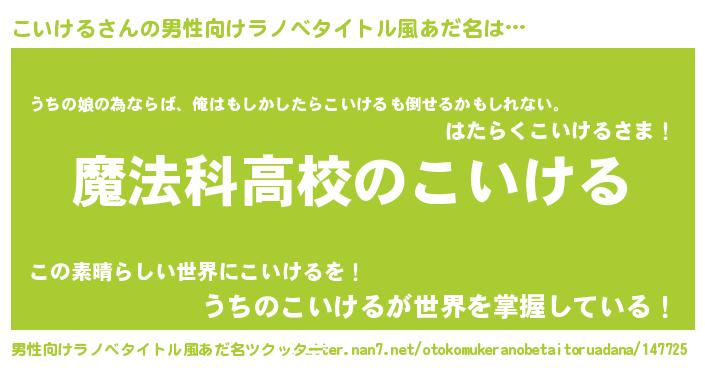 | 女子向けラノベタイトル風あだ名 | 『こいけるなんてお断りですっ。』 |