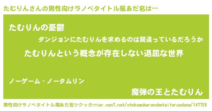 | ヒーロー風カッコイイあだ名 | 『ネオタムリン』『スーパータムリン』 |