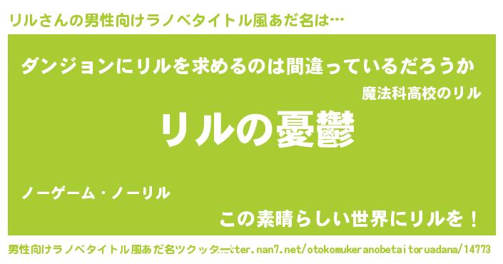 | 女子向けラノベタイトル風あだ名 | 『(仮)リルのやんごとなき事情』 |