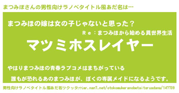 | 胡散臭い通販商品みたいなあだ名 | 『信頼と実績のペンダント…その名も「まつみほ」』 |