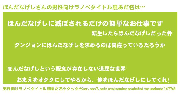 | 女子向けラノベタイトル風あだ名 | 『ほんだなげしは平凡を望む』 |