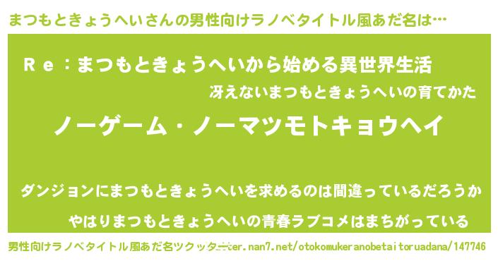 | 女子向けラノベタイトル風あだ名 | 『まつもときょうへい恋絵巻』 |