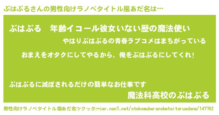 | 女子向けラノベタイトル風あだ名 | 『ぶはぶる恋絵巻』『ぶはぶる伯爵の花嫁』 |