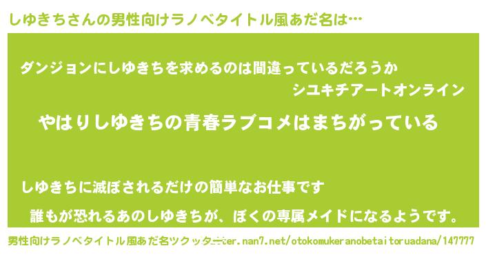 | 女子向けラノベタイトル風あだ名 | 『しゆきちの雑貨屋さん』 |