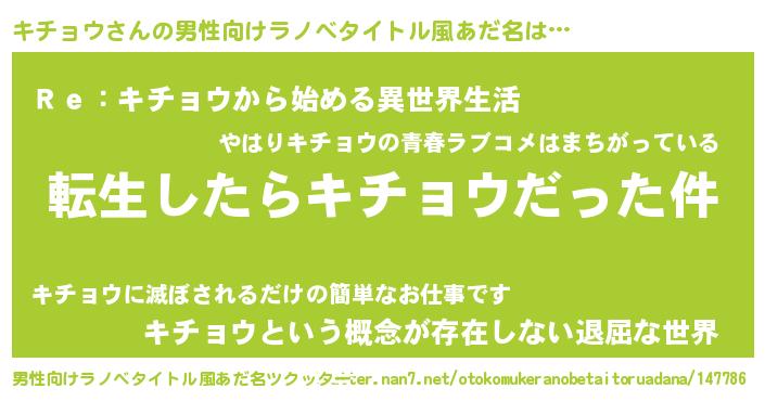 | ヒーロー風カッコイイあだ名 | 『サイバー戦士キチョウ』『ネオキチョウ』 |