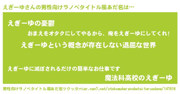 | ヘコむあだ名 | 『えぎーゆ(苦笑)』『えぎふぇ~』 |