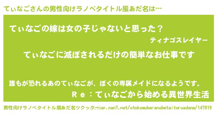 | 意味不明あだ名 | 『とにかく怪しいてぃなご』 |
